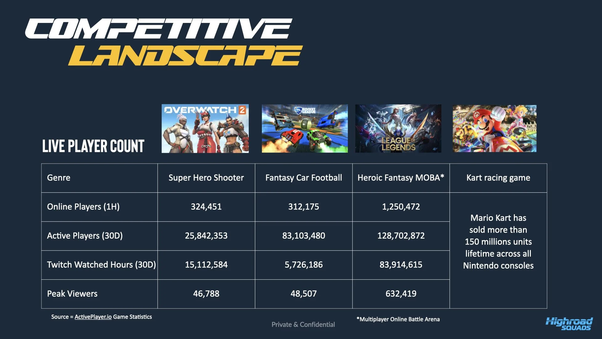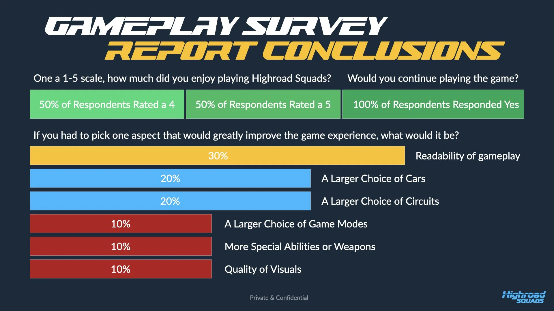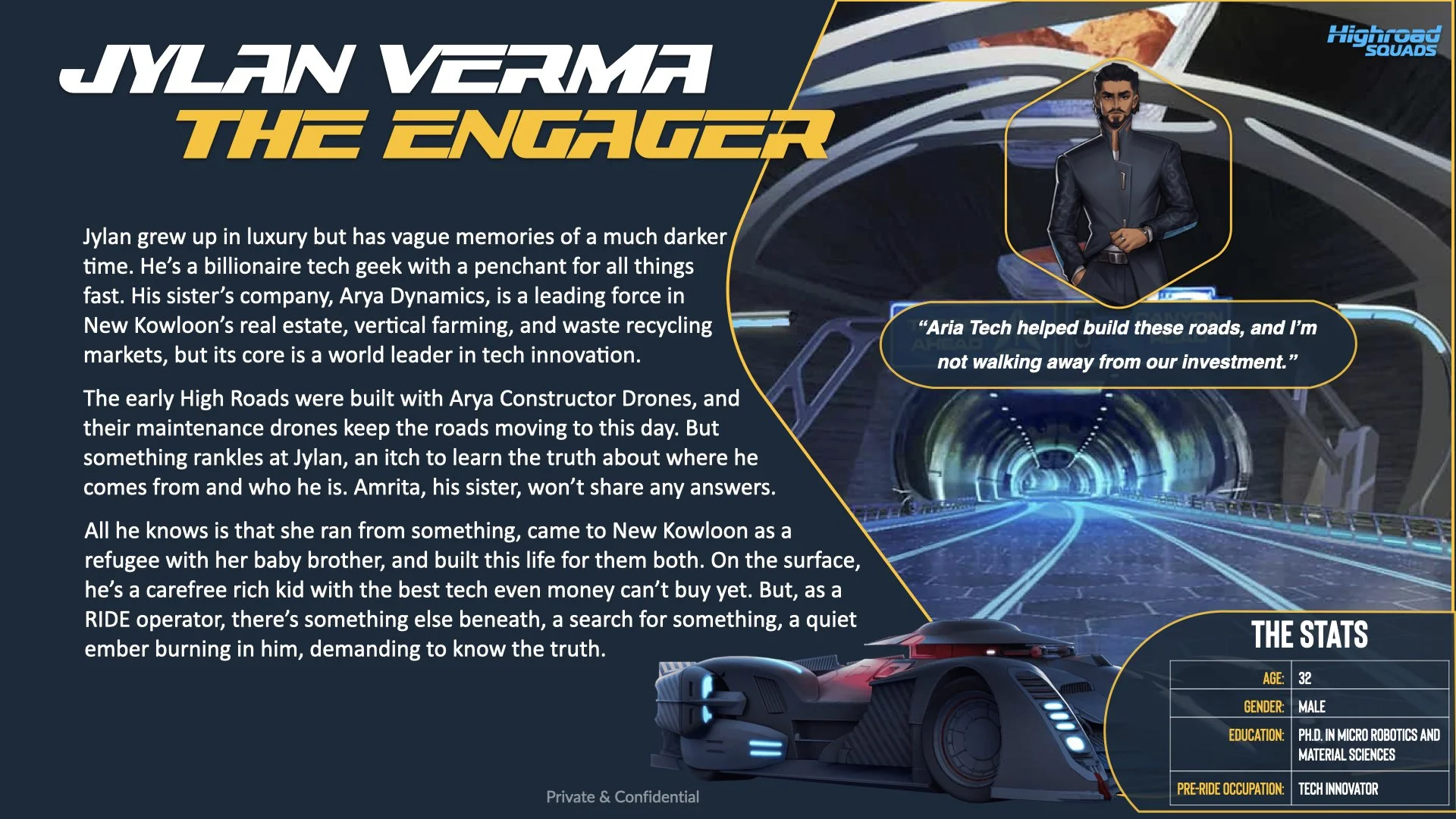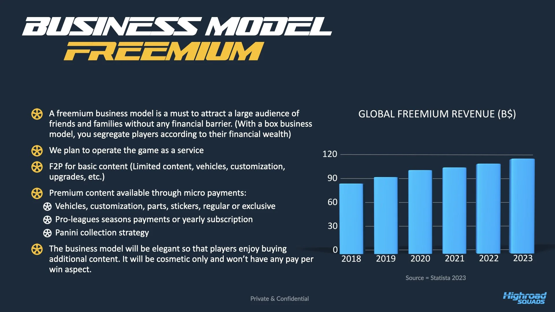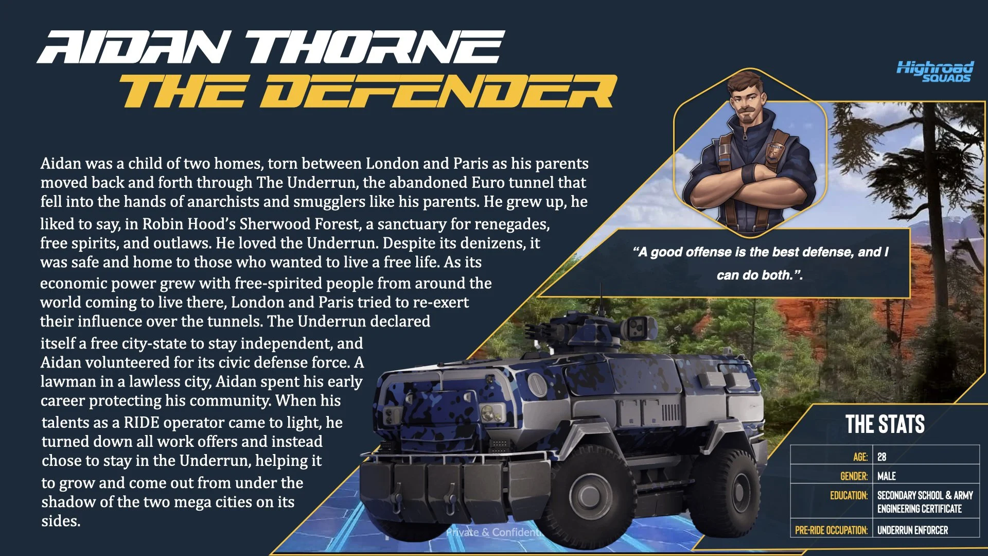 Highroad Squads was a new video game IP seeking investment. A group of seasoned developers set out to make an innovative, hero-based, 5V5 convoy combat game, with advanced driving and shooting elements, designed for friends and families of all ages from across the world. The colorful arcade experience, with deep gameplay features and strong community elements, are designed to promote replayability and drive competitive spirit.
