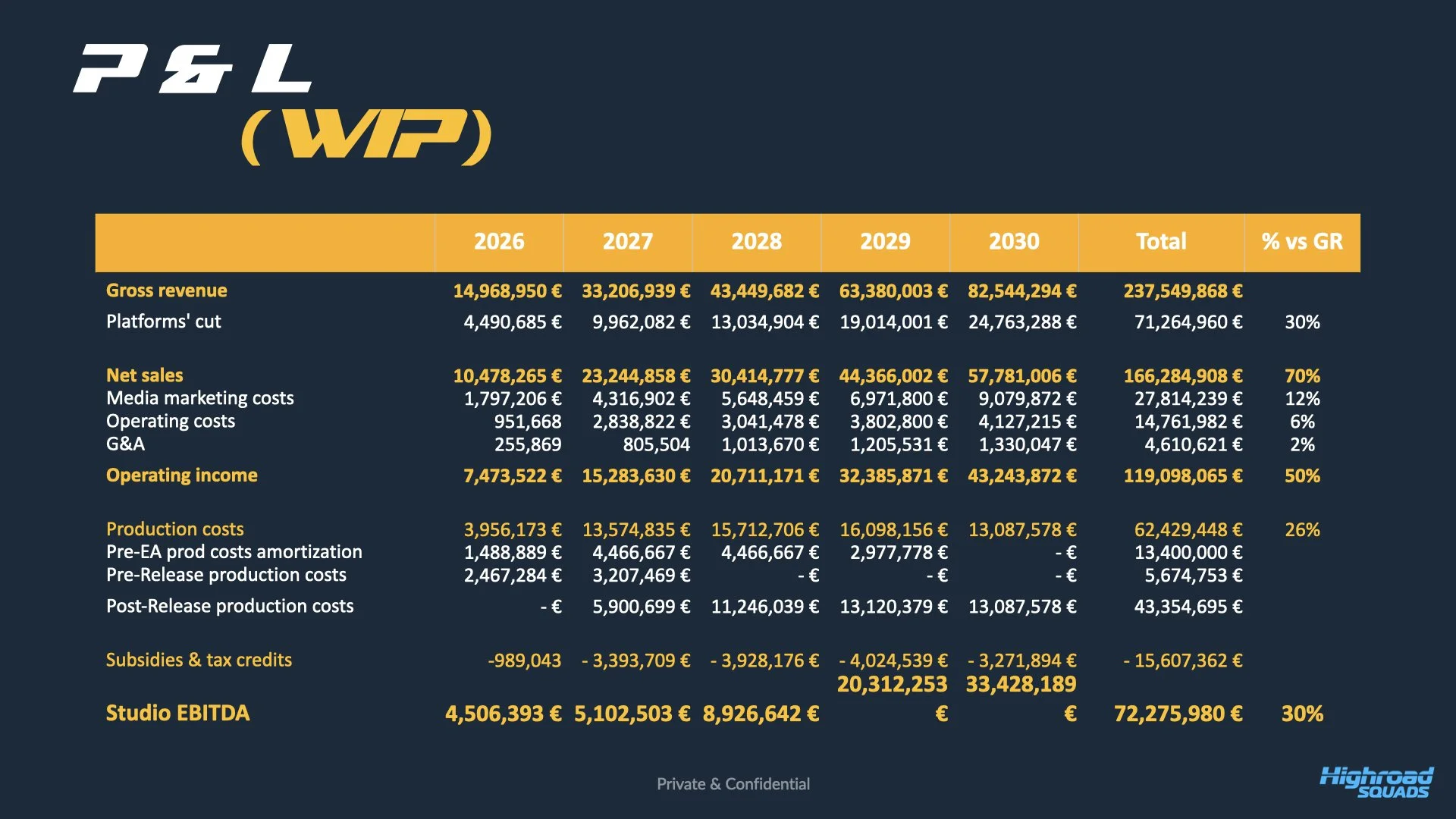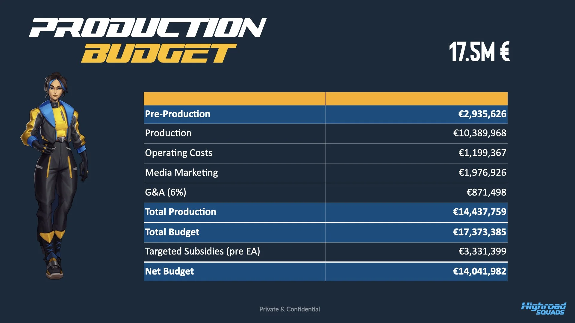 I was brought on in the early stages to help make the business case and approach interested investors. My role bridged the production, business, and finance departments as we built a playable vertical slice, multi year budget & P&L, launch strategy, and all marketing materials.
