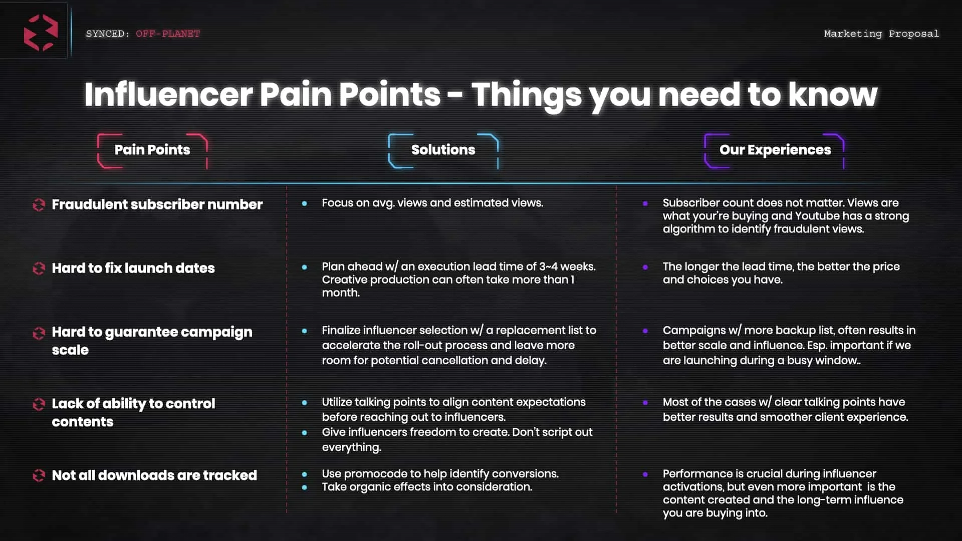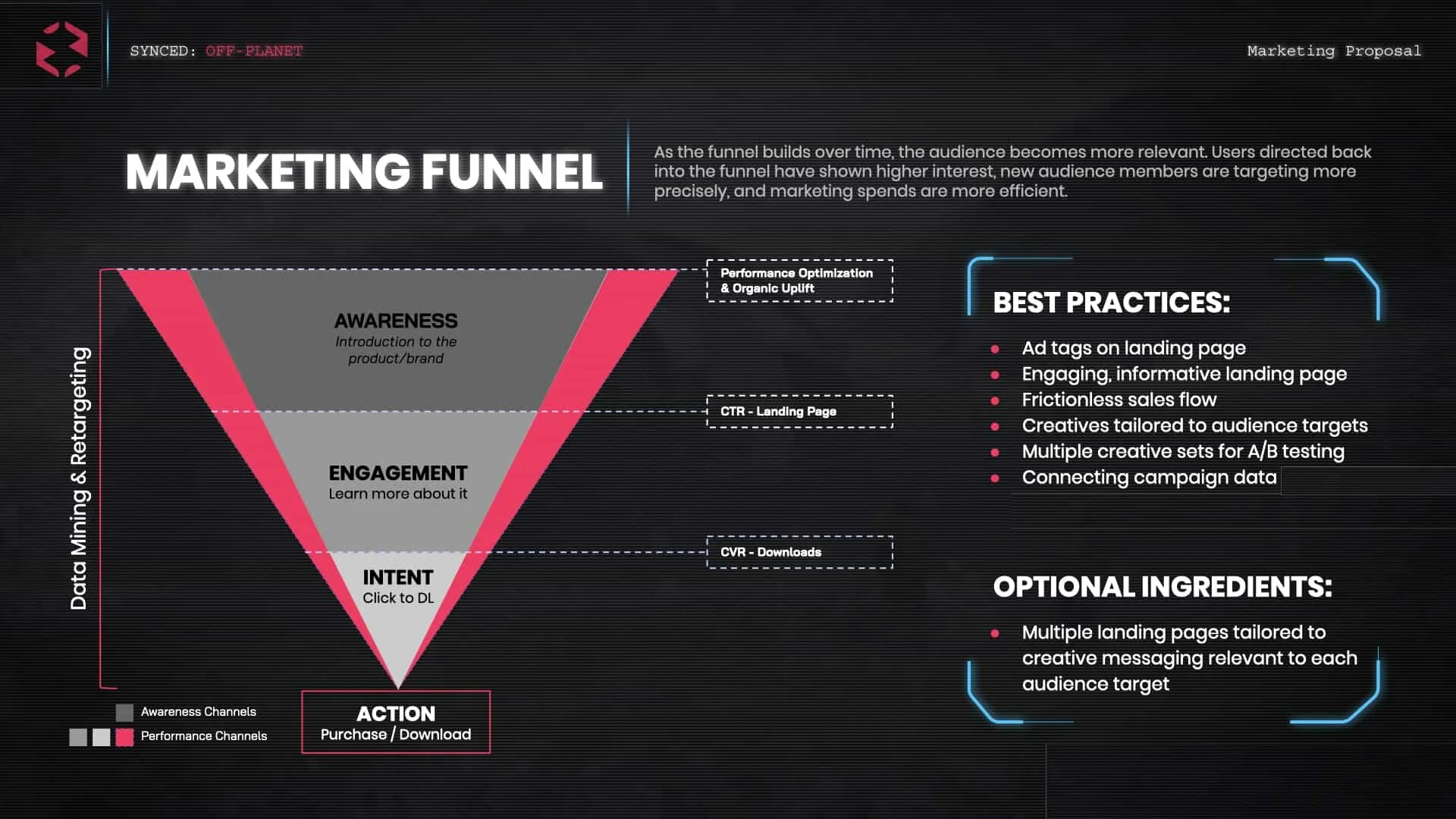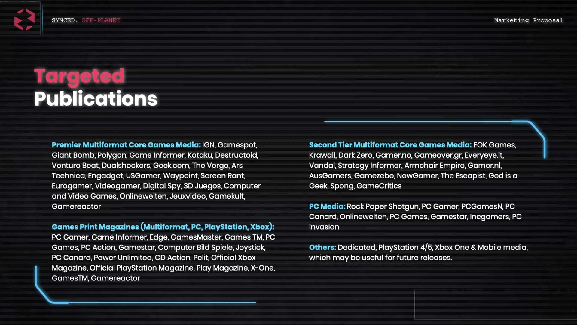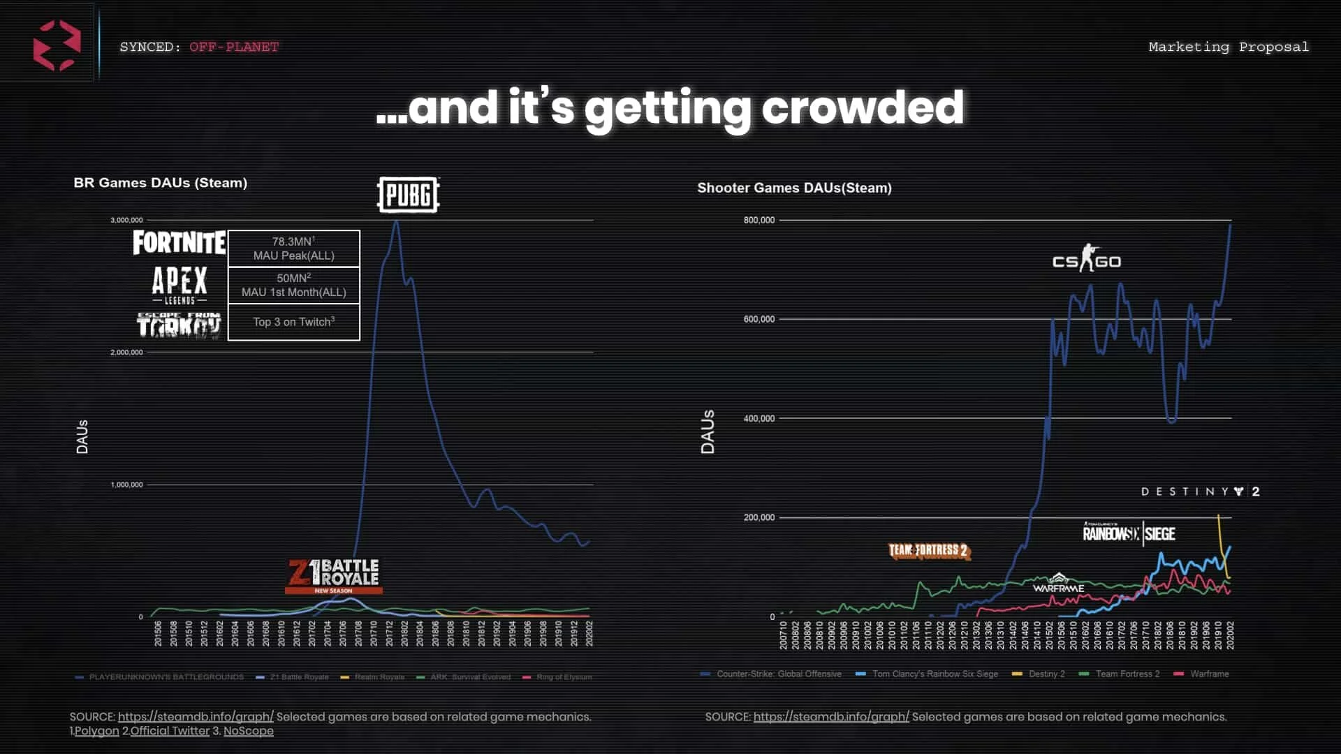 Tencent Games was looking to support their upcoming global release of Synced: Off Planet with a massive international rollout. With a crowded battle royal space, and an industry looking to recreate the success of Apex Legends, a new approach was needed in order to capture the market and standout from the pack. After extensive brand building with the studio, the below wholistic plan was created to support the AAA release.